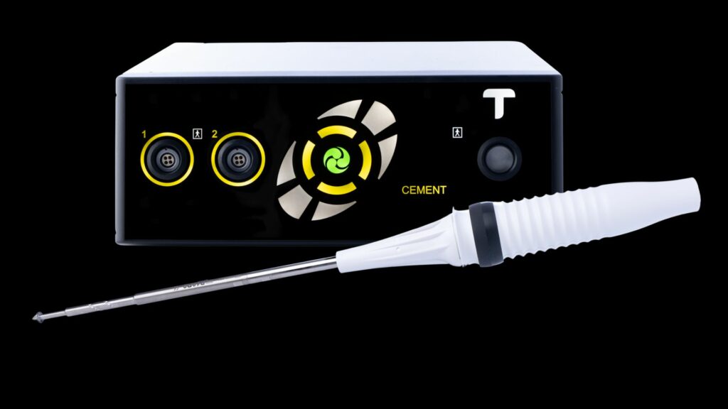 - The plug and play generator provides two cement channels to allow for efficient tip interchange during surgery.