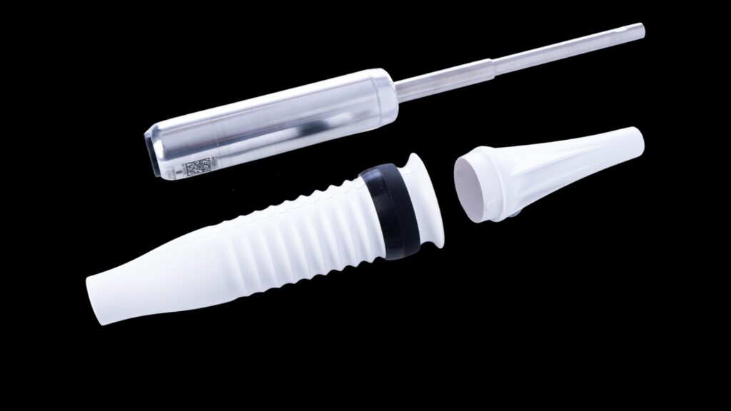 A lightweight, single-use, ergonomic outer handpiece with annular switch. A foot pedal is available for alternative activation.